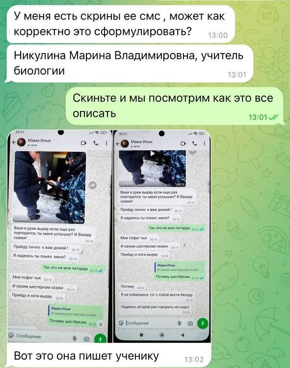 Кирилл (имя изменено – прим Ред.) – мальчик, в чей адрес посыпались в переписке угрозы и оскорбления, и Максим (имя изменено – прим Ред.), сын учителя биологии учатся в одном классе. Раньше дружили, даже порой оставались ночевать друг у друга. Но в прошлом году перестали общаться. Поводом для разногласий у детей, по мнению педагога, стала оценка по ее предмету. У Кирилла до четвертой четверти в дневнике стояли хорошие оценки. Но зимой ребенок якобы расслабился, поэтому скатился по успеваемости. Педагог оценила результаты школьника на твердую тройку.