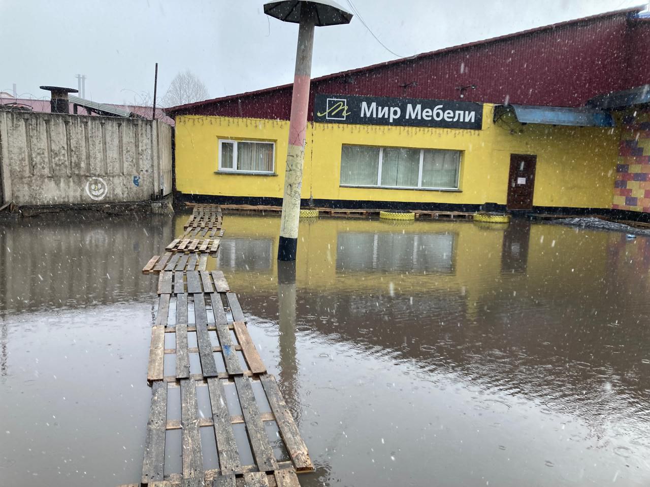 Люди спешно отыскали и соорудили из поддонов  что-то вроде тротуаров, но это плохо защищает от глобального потопа.