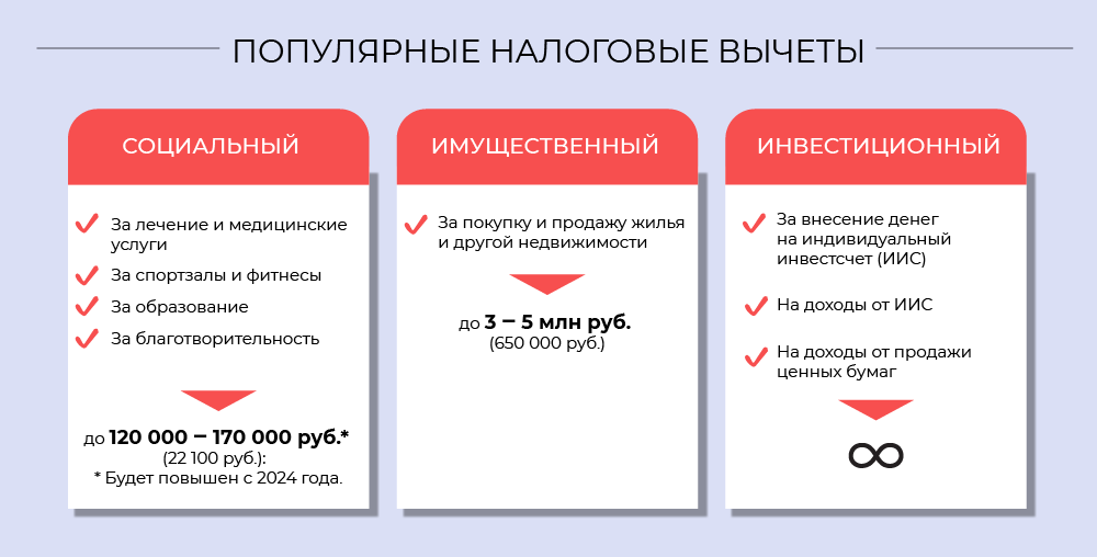 Налоговый вычет поможет сделать крупную покупку немного выгоднее. Кроме того, на возврат таких сумм могут рассчитывать инвесторы, покупатели абонементов в спортзал и образовательных услуг. Рассказываем, какие виды налоговых вычетов существуют, когда можно их получить и каких ошибок не стоит допускать — ведь выиграть у налоговой инспекции в суде, скорее всего, не удастся. Об этом предупреждают эксперты, ссылаясь на практику.